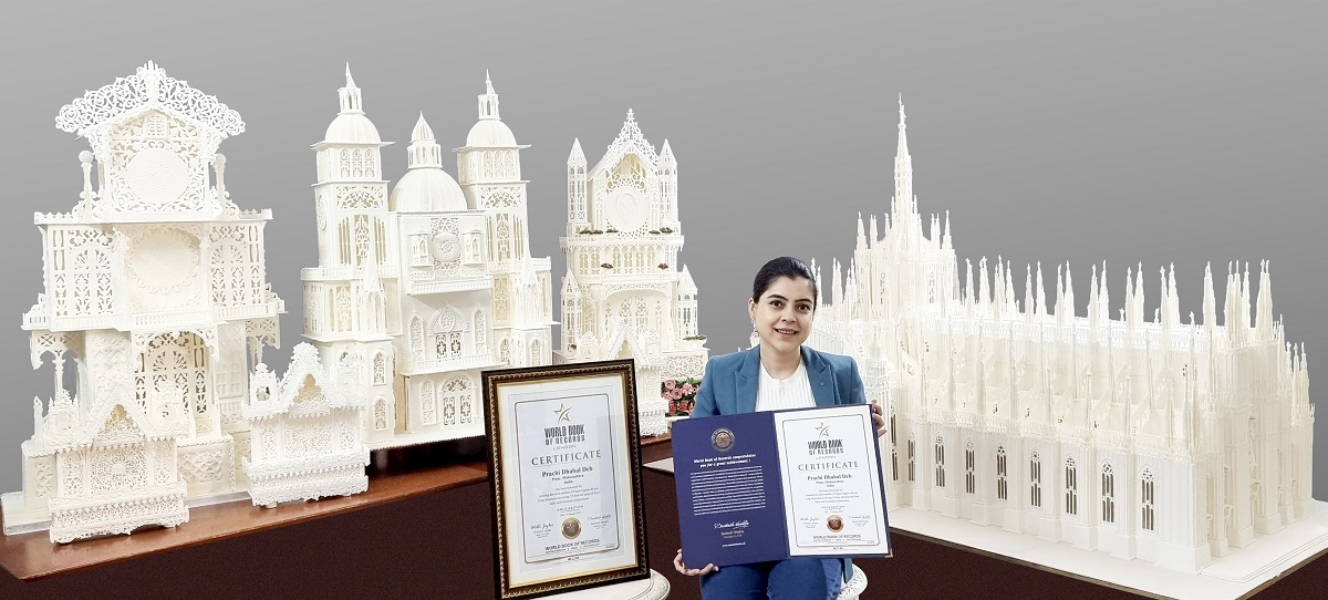 She has mastered the art of creating royal-looking, luxurious bakes, which are majestic in their appeal and delicious in taste. She can be rightly called the queen of royal icing and her designs would justify the same. World Book of Records, London takes pride in her passion and perseverance, and eye for detail which honours her in its Gold Edition-2021. Few of her creations are 3.9 feet tall Indian European architecture, 3.7 feet tall structures inspired by European architecture, 3.8 feet structures inspired by Victorian architecture, and 3.6 feet structures inspired by Indian Mughal architecture. Taking inspiration from artistic elements from around the world, Prachi incorporates these in her designs. Her deft execution of the thin but evenly spaced strings of royal icing extension work is an epitome of perfection par excellence.